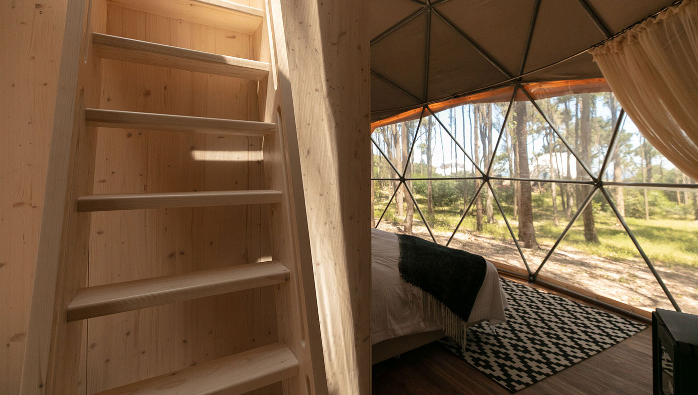 For families, groups of friends or couples who need more space. They have a mezzanine floor which can be accessed by a ladder.